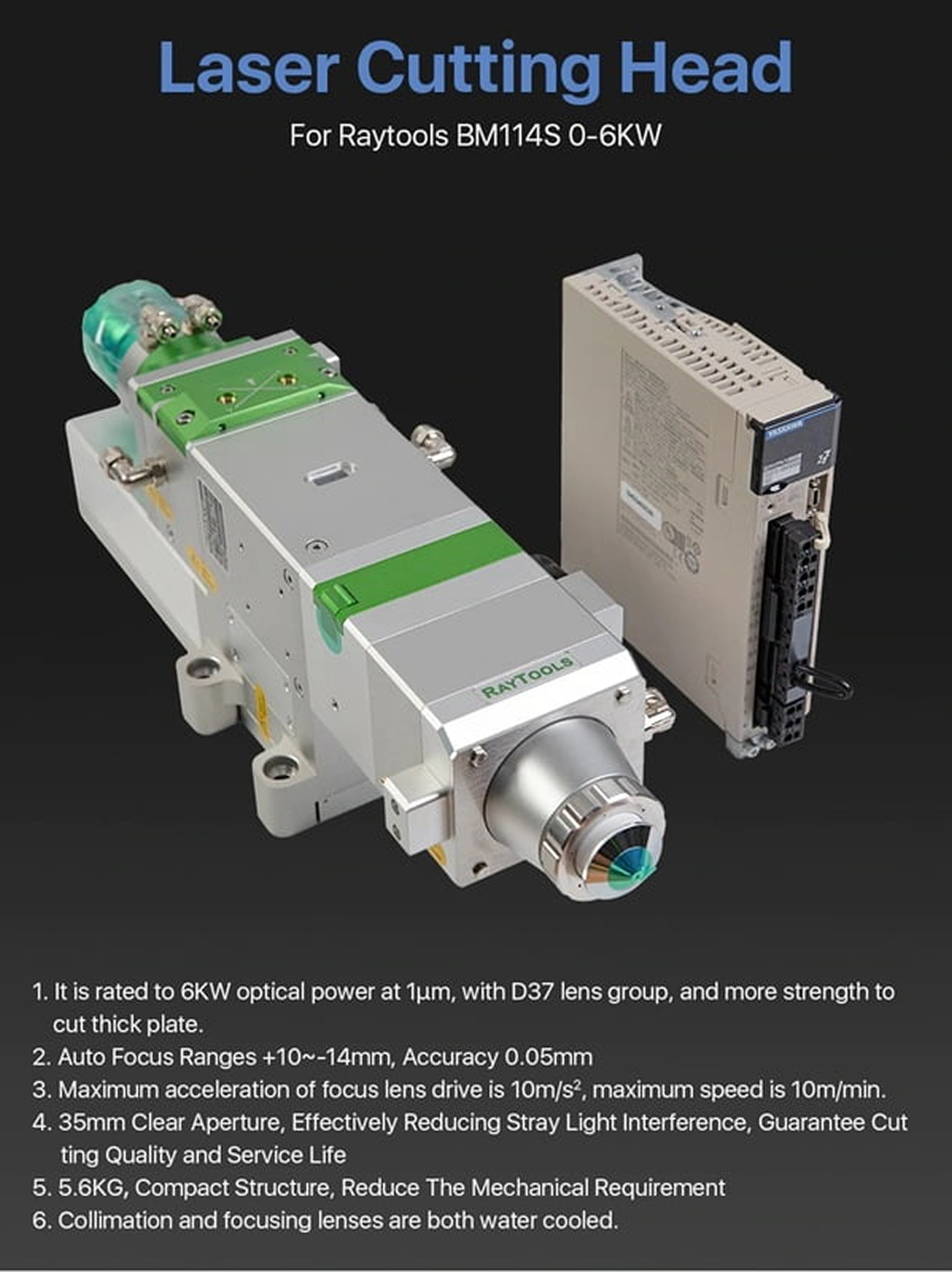The Raytools BM114S Autofocus Fiber Laser Cutting Head offers precise, automated focus adjustment, enhancing cutting quality and efficiency in fiber laser systems.